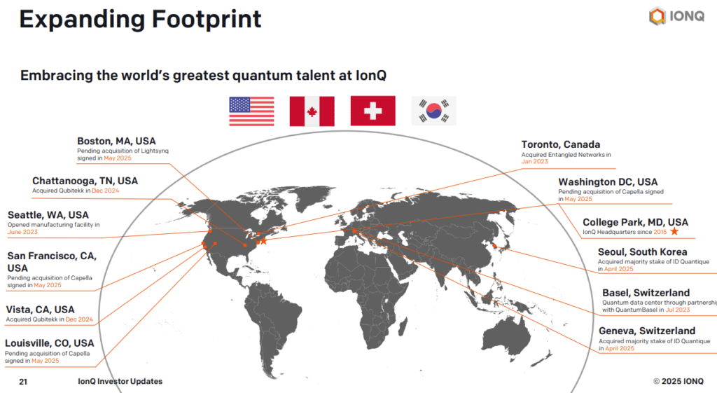 In the latter half of 2025, IonQ completed a series of acquisitions that fundamentally changed the company’s scope. The purchase of Oxford Ionics brought in world-leading 2D ion trap technology, which is expected to increase qubit density by up to 300 times. Then came the acquisition of Skyloom Global, a specialist in optical communications.