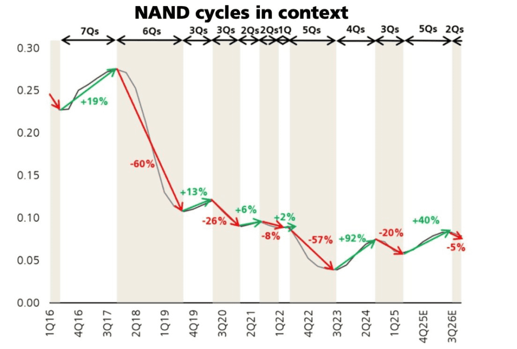 • NAND Cyclicality: While the AI cycle feels different, memory markets remain inherently cyclical. Any sudden addition of new industry capacity from rivals like Samsung or SK Hynix could erode pricing power. If the industry loses its recent discipline and returns to a “market share at all costs” mentality, the current 50%+ margins will vanish.